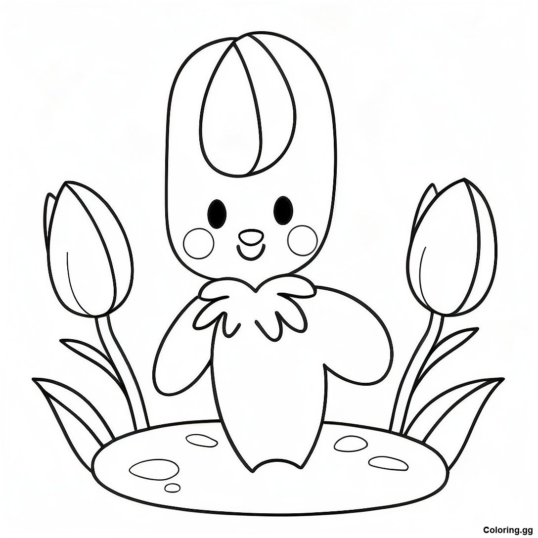 அழகான கார்டூன் டூலிப் வண்ணப்படம் இன் அச்சிடக்கூடிய PDF ஐ பதிவிறக்கவும்