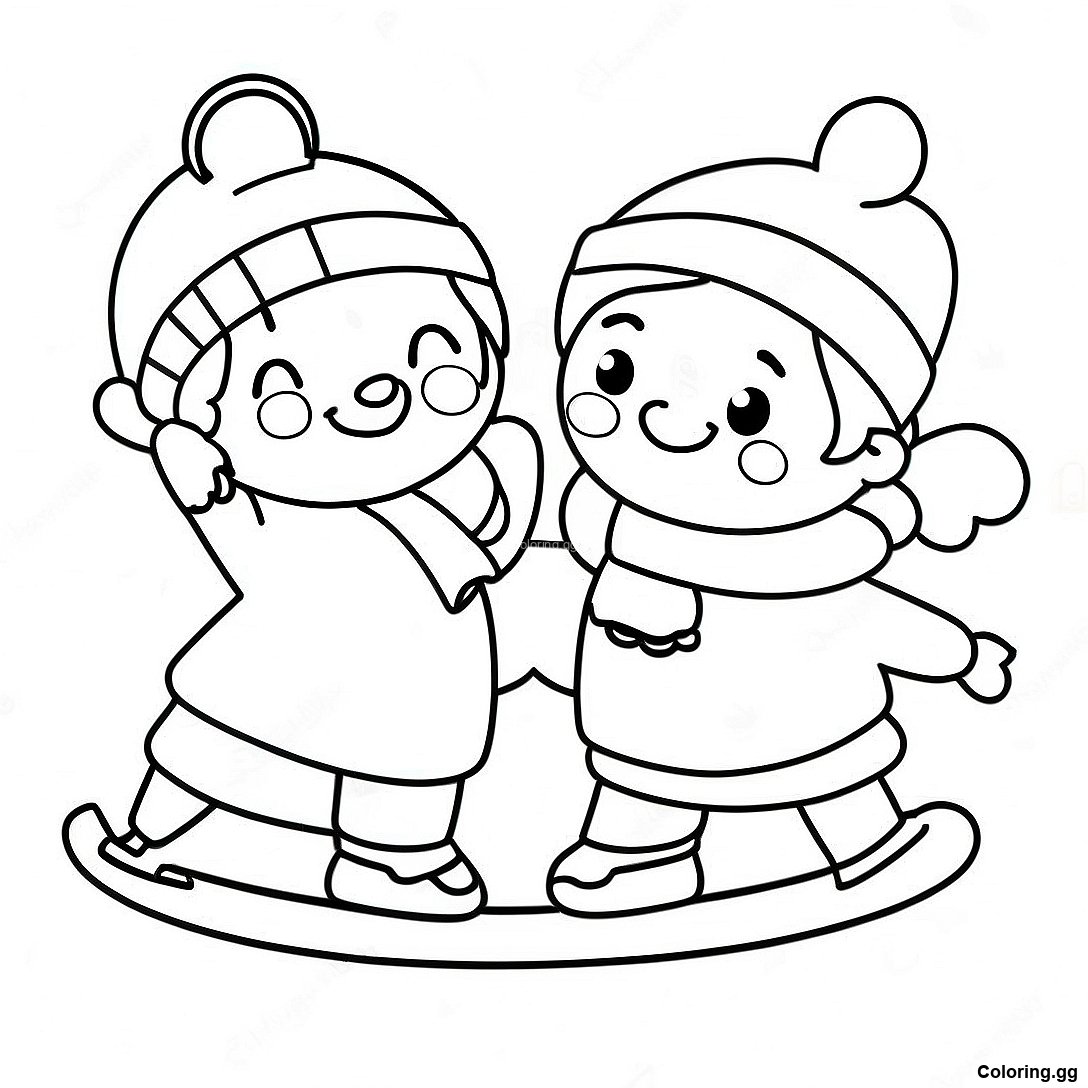 அழகான குழந்தைகள் ஐஸ் ஸ்கேட்டிங் வண்ணப்படம் இன் அச்சிடக்கூடிய PDF ஐ பதிவிறக்கவும்
