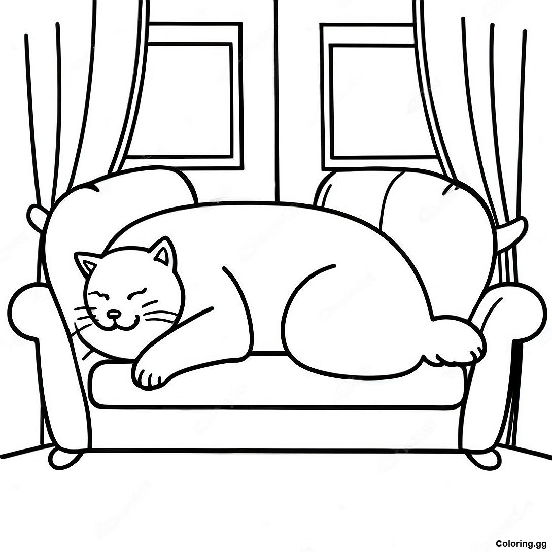 சோம்பலான கருப்பு பூனை நாற்காலியில் தூங்கும் வண்ணப்படம் இன் அச்சிடக்கூடிய PDF ஐ பதிவிறக்கவும்
