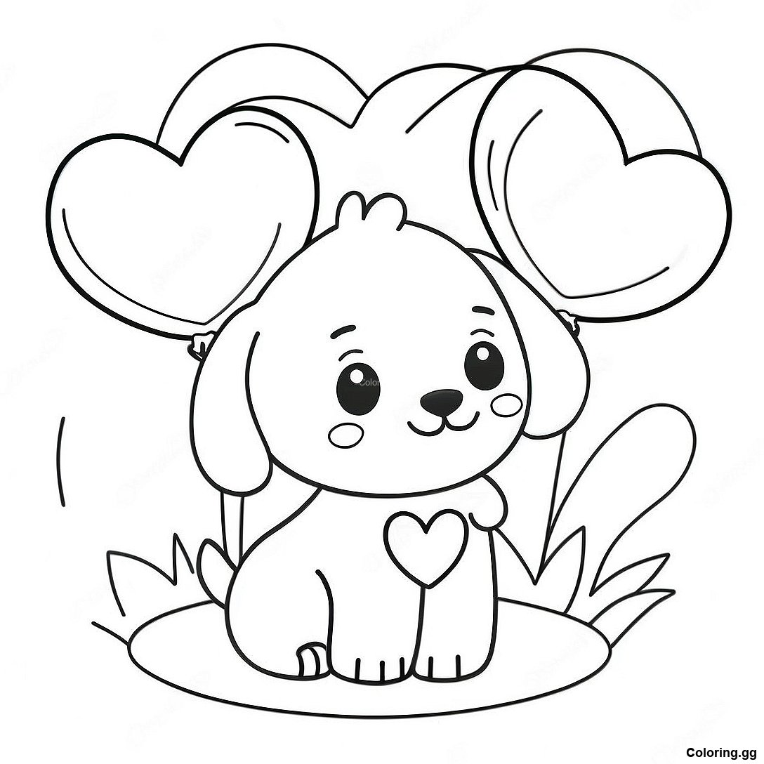 இதயம் காற்றில் உள்ள அழகான குட்டி நாய் வண்ணப்படம் இன் அச்சிடக்கூடிய PDF ஐ பதிவிறக்கவும்