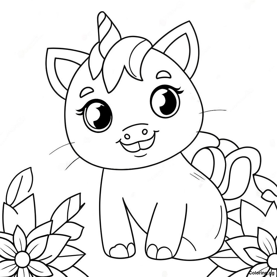 மலர்களுடன் அழகான யூனிகார்ன் பூனை வண்ணப்படம் இன் அச்சிடக்கூடிய PDF ஐ பதிவிறக்கவும்