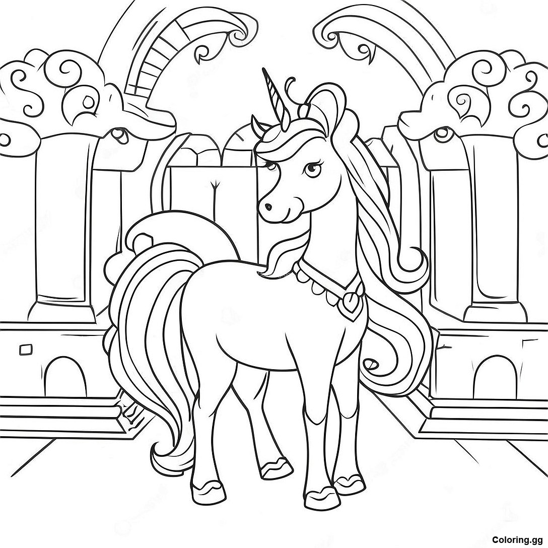 ஒரு கோட்டையில் மாஜெஸ்டிக் யூனிகார்ன் பிரின்சஸ் வண்ணப்படம் இன் அச்சிடக்கூடிய PDF ஐ பதிவிறக்கவும்
