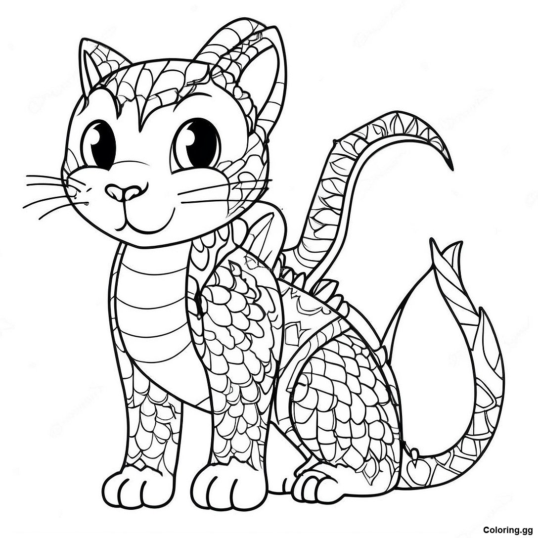 பூனை டிராகன் வண்ணப்படம் இன் அச்சிடக்கூடிய PDF ஐ பதிவிறக்கவும்