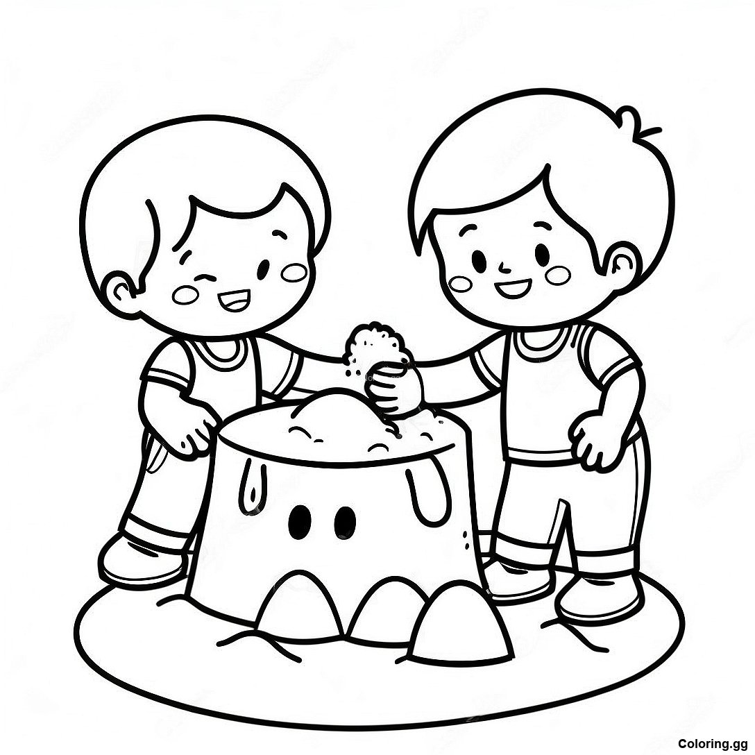 விளையாட்டுப் பிள்ளைகள் மணல் கோட்டை கட்டும் வண்ணப்படம் இன் அச்சிடக்கூடிய PDF ஐ பதிவிறக்கவும்