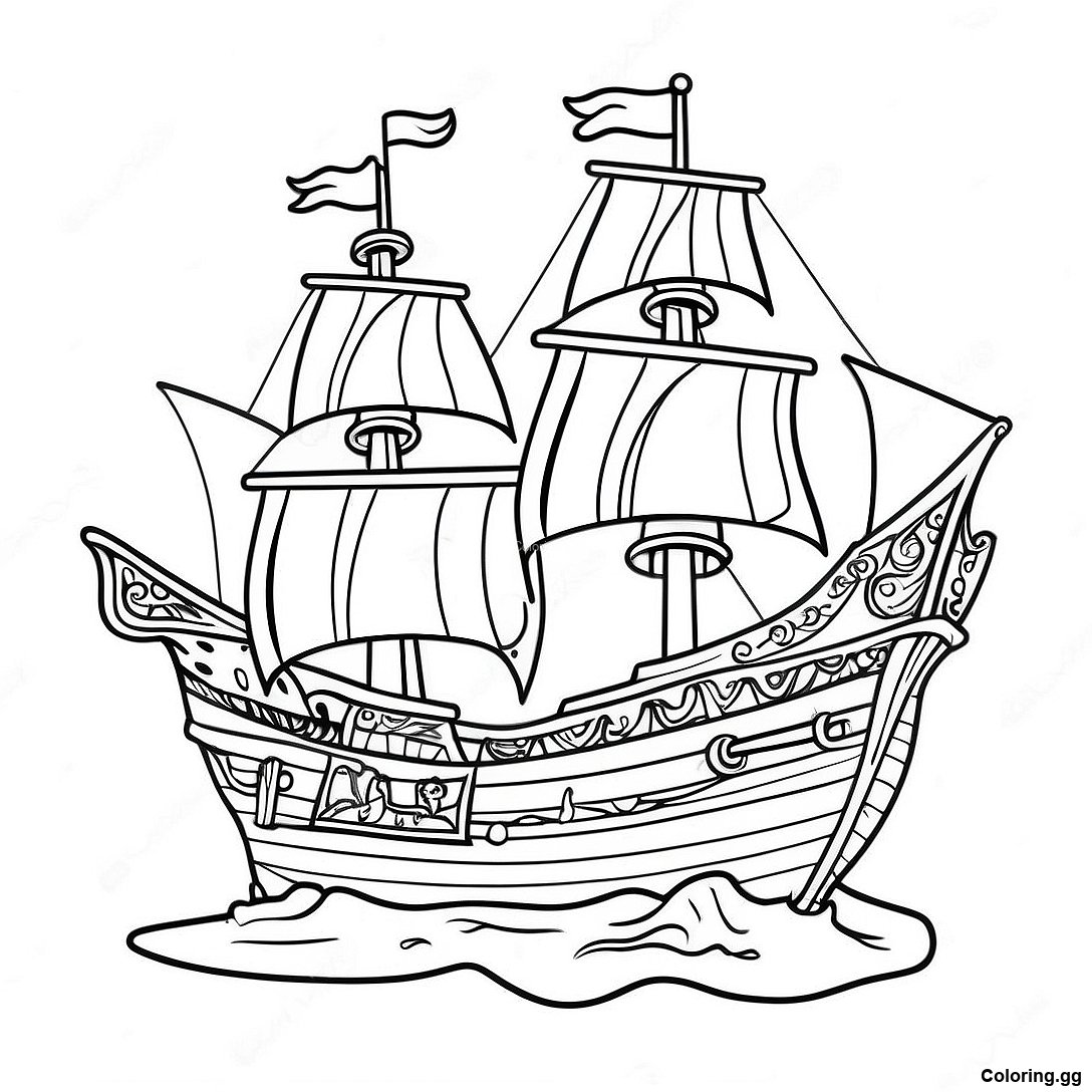 வண்ணமயமான கடற்ப Pirate கப்பல் வண்ணப்படம் இன் அச்சிடக்கூடிய PDF ஐ பதிவிறக்கவும்