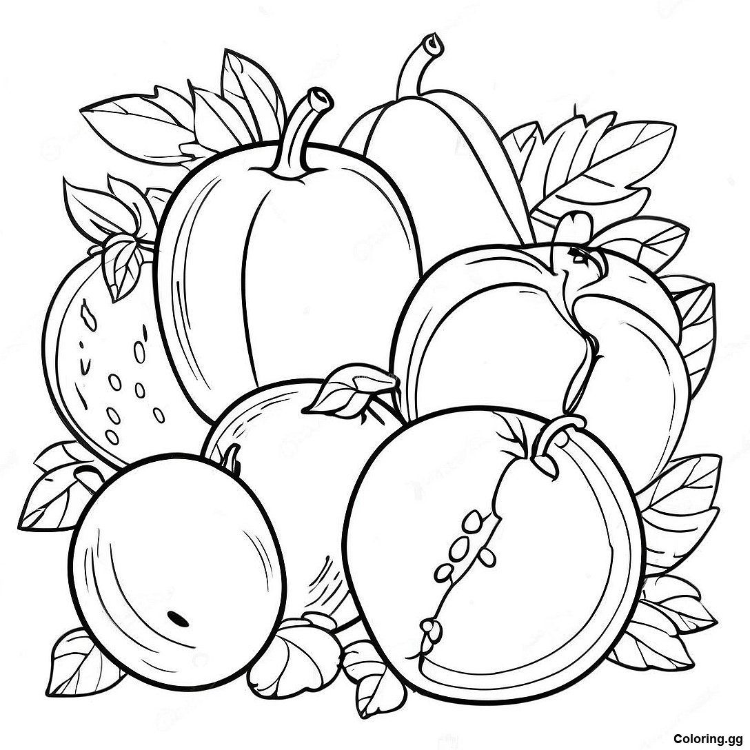 வண்ணமயமான பழங்கள் மற்றும் காய்கறிகள் வண்ணப்படம் இன் அச்சிடக்கூடிய PDF ஐ பதிவிறக்கவும்